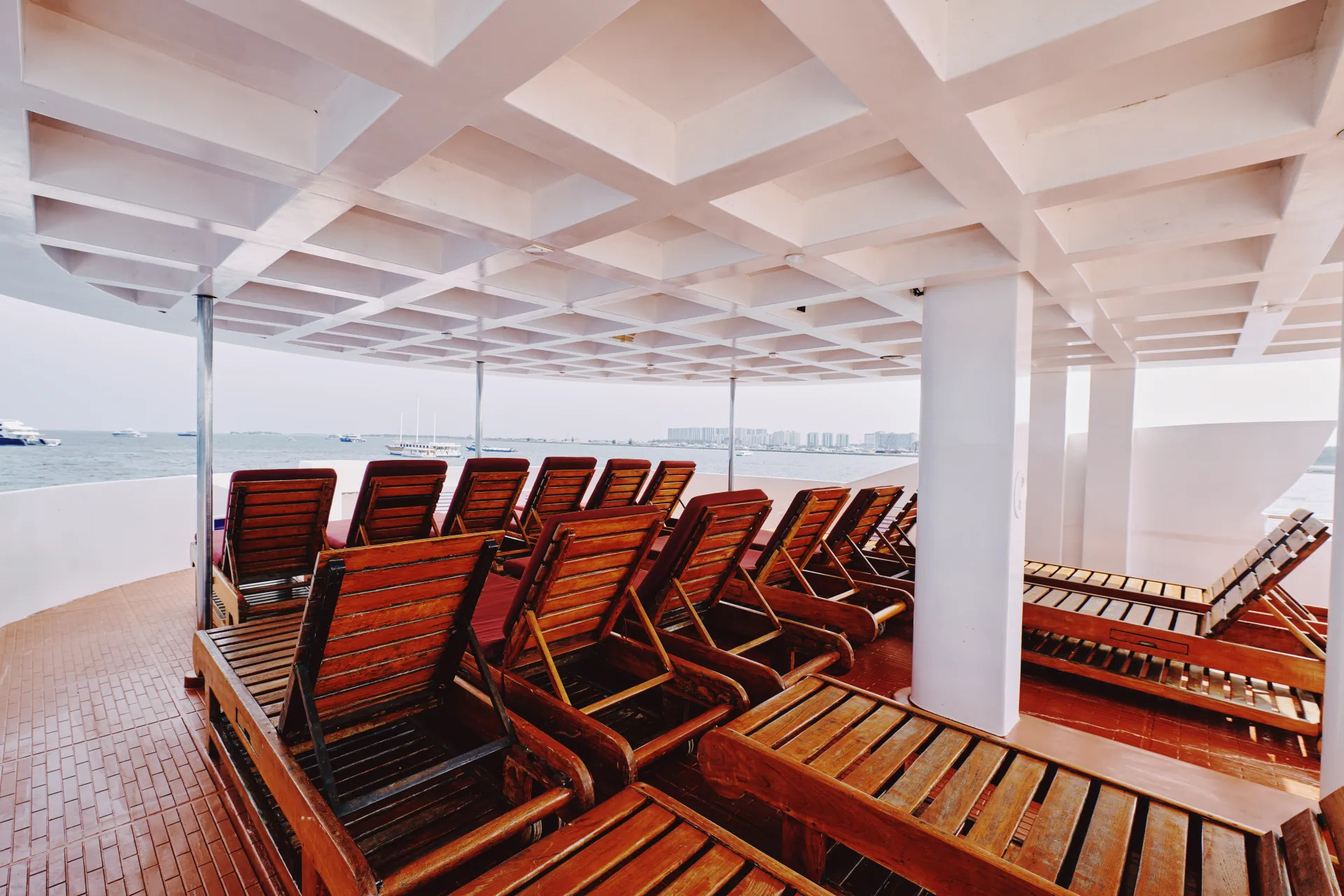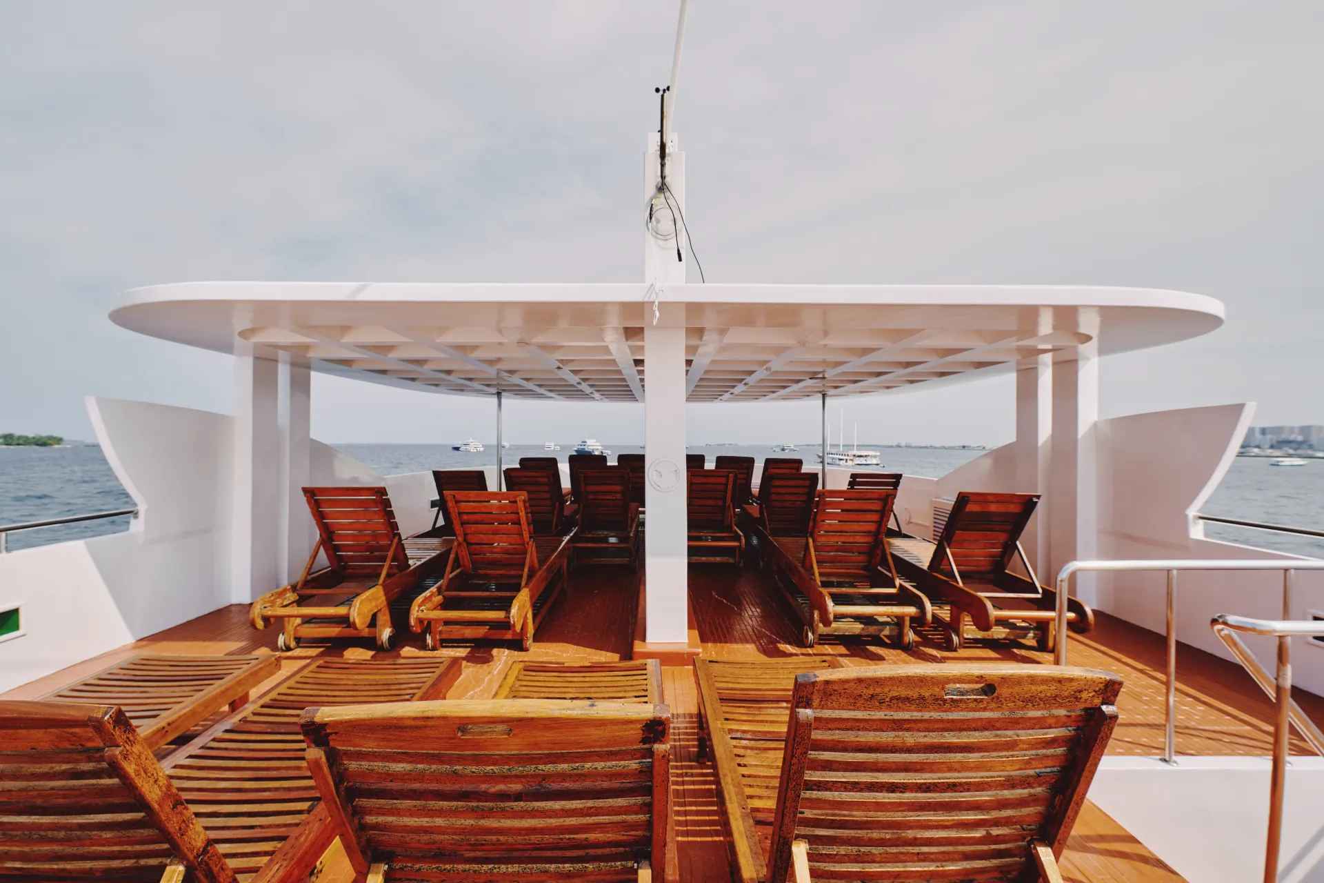 - Солнечная палуба: Шезлонги, лежаки, кресла-мешки.