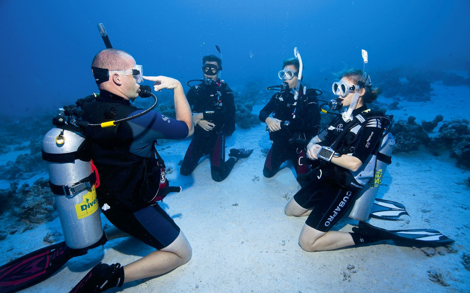 Инструктор проводит предварительное теоретическое занятие и затем 2 учебных погружения в живописных лагунах острова РачаЯй (Большой Королевский). Это наиболее комфортное, красивое и безопасное место для погружения начанаюших дайверов.