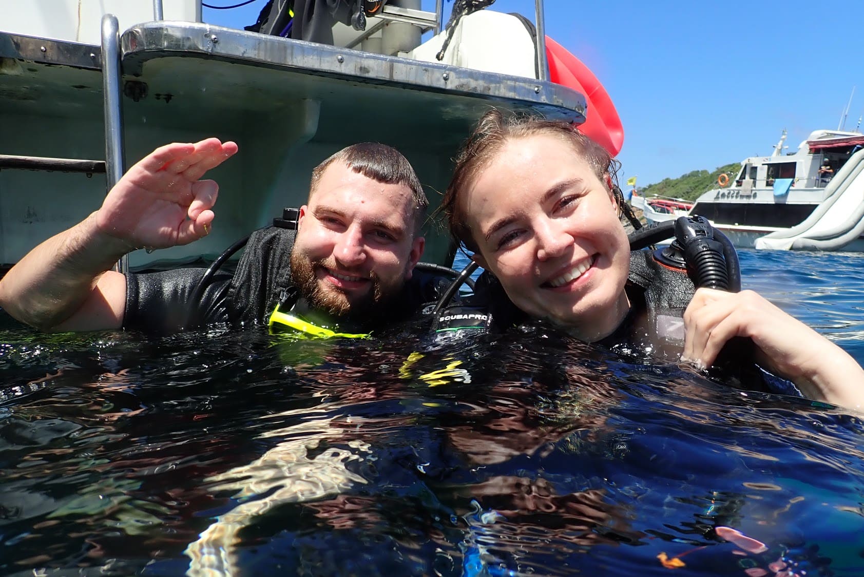 - 10:30 — погружение №1, выполнение упражнений курса и затем исследование красивейших рифов и других подводных красот близ острова Рача Яй. Исходя из погодных условий, на месте выбирается дайв-сайт — Bay No1, Bay No3, Siam Bay или Bungalow Bay;